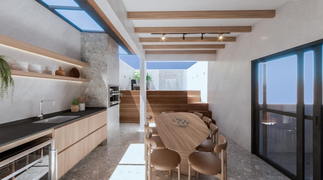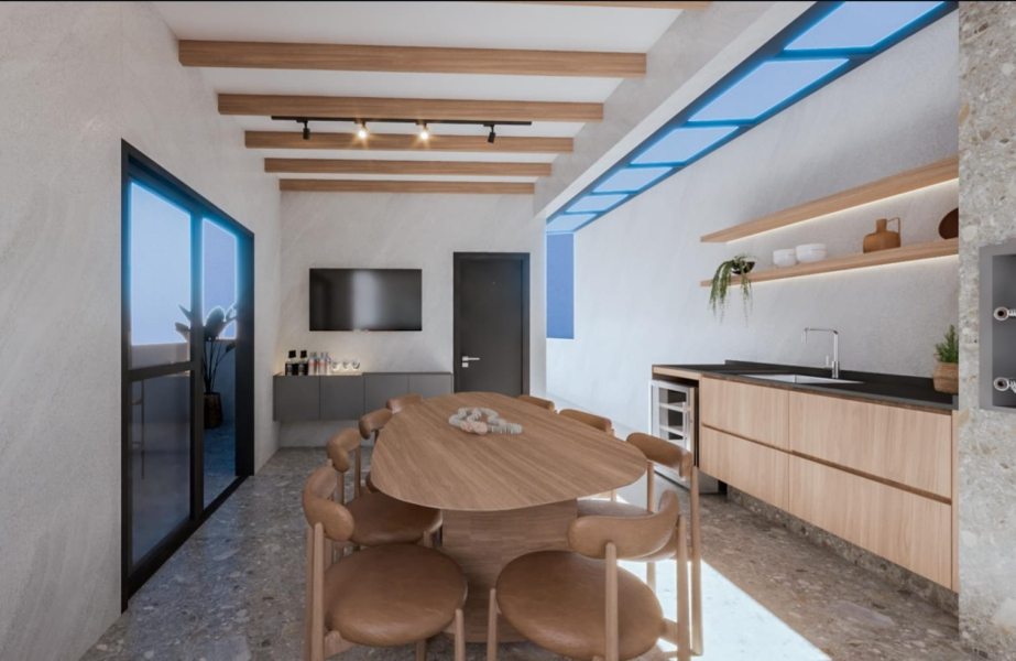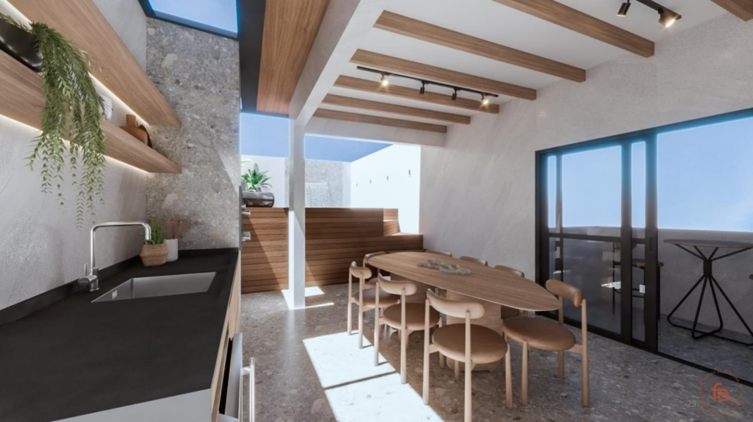 Casa alta duplex, com 215 m² de área total, possui vaga para 2 carros, sala 3 ambientes, lavabo, cozinha, área de serviço, 3 dormitórios sendo 2 suítes e 1 banheiro social. Possui uma área de lazer sofisticada, com piscina e espaço gourmet com churrasqueira.