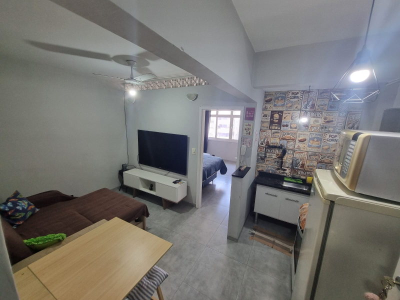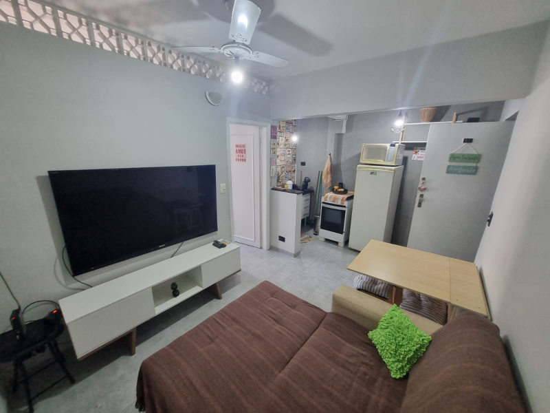 Maravilhoso apartamento de 1 dormitório, com 38,67 m² de área construída, localizado na quadra da praia, no bairro do Embaré – Santos/SP.