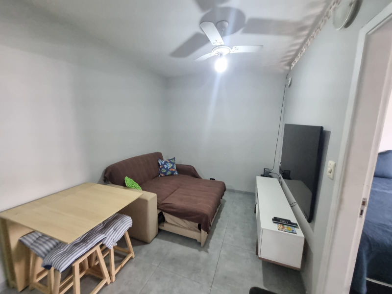 Apartamento reformado, com porcelanato, pintura nova, banheiro com azulejos até o teto, chuveiro e box instalados.