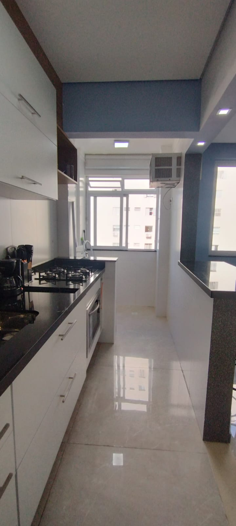 O imóvel possui 53 m², distribuídos em sala aconchegante, cozinha americana, área de serviço conjugada, 1 banheiro e 1 vaga de garagem. Ambientes bem iluminados e ventilados, com vista privilegiada para o mar.